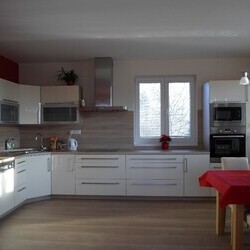 Construction of a family house in Rumburk. This is a Populus type house, in which the investor used the attic to create rooms for occasional overnight stays. The built-up area is 94m2, the supporting structure is a certified K-KONTROL® construction system, and the roof structure is designed with truss girders with living space.