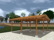 Garage parking space 2 is a universal structure suitable for any garden. It is supplied as a kit, ready for self-assembly. All wooden elements are made of dried spruce wood, columns 120/120 mm, wall plates 120/160, purlins 120/200 mm, rafters 60/140 mm. The structure is designed for roofing with light roofing material. The dimensions of the structure can be adjusted according to the individual wishes of the customer.