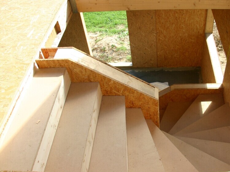 Staircases from the K-KONTROL® construction system are a suitable construction solution for any building. Once the staircase has been installed, the shell of the building already has a safe exit to the upper floor. The staircase can thus be used during construction, and after completion, all that is needed is to fit the treads, and it will serve the investor for many years to come. The quick production of stair treads and their simple, precise installation help to reduce construction costs.