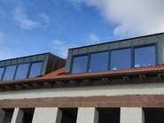 A dormer is a structure located above the roof plane of a building, serving to ventilate and illuminate the attic or loft space. Larger dormers can also function as a functional extension of the attic living space. The classic carpentry solution for dormers is a relatively complex and time-consuming task performed directly on site, which is reflected in the overall price of the dormer. K-KONTROL® dormers are manufactured in a low-maintenance production hall environment, which reduces the overall cost of the dormer.