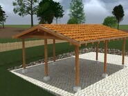 Garage parking space 2 is a universal structure suitable for any garden. It is supplied as a kit, ready for self-assembly. All wooden elements are made of dried spruce wood, columns 120/120 mm, wall plates 120/160, purlins 120/200 mm, rafters 60/140 mm. The structure is designed for roofing with light roofing material. The dimensions of the structure can be adjusted according to the individual wishes of the customer.