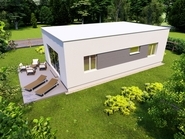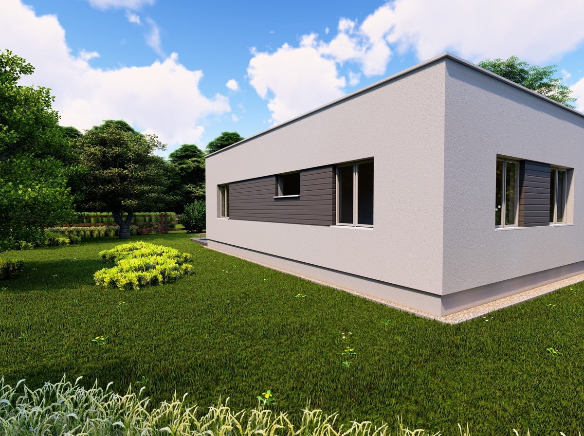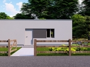 Alnus is a single-story family house designed for comfortable living for two people regardless of age. Although the house is designed for permanent living for only two people, the spacious living room with kitchen can accommodate larger gatherings. At the same time, everyone will find enough privacy and peace in their bedroom or study. When designing the house, great emphasis was placed on minimizing investment and operating costs. Thanks to the simple design of the load-bearing structures, the interior of the house can be easily adapted to individual requirements. The house can be built in a mirror-inverted design.